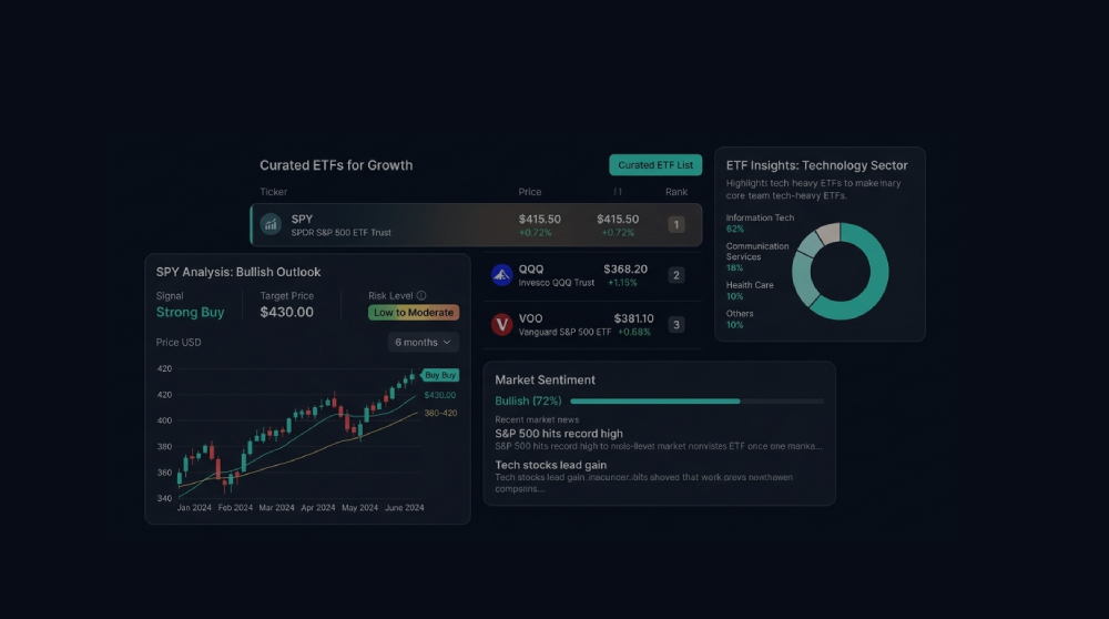 A curated ETF intelligence system designed to simplify complex market data through structured analysis and expert review.